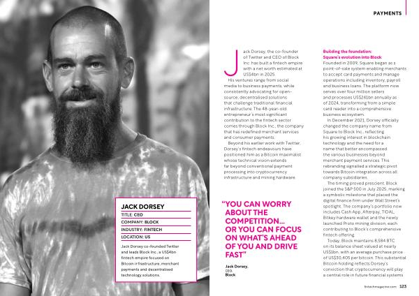 Jack Dorsey co-founded Twitter and leads Block Inc., a US $ 4bn fintech empire focused on Bitcoin infrastructure, merchant payments and decentralised technology solutions.