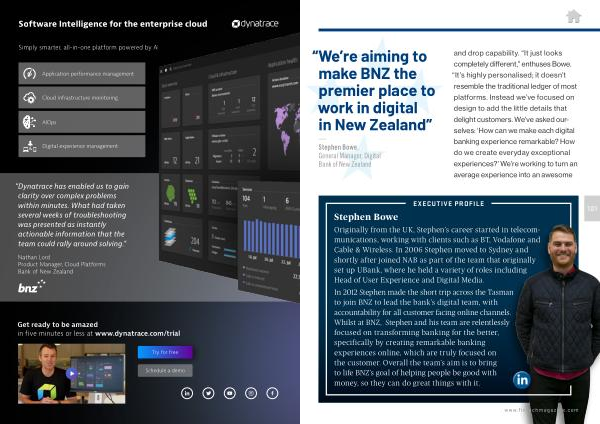 — Stephen Bowe , General Manager , Digital Bank of New Zealand and drop capability . “ It just looks completely different ,” enthuses Bowe . “ It ’ s highly personalised ; it doesn ’ t resemble the traditional ledger of most platforms . Instead we ’ ve focused on design to add the little details that delight customers . We ’ ve asked ourselves : ‘ How can we make each digital banking experience remarkable ? How do we create everyday exceptional experiences ?’ We ’ re working to turn an average experience into an awesome