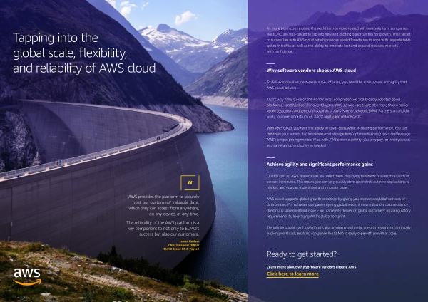 As more businesses around the world turn to cloud-based software solutions , companies like ELMO are well-placed to tap into new and exciting opportunities for growth . Their secret to success lies with AWS cloud , which provides a solid foundation to cope with unpredictable spikes in traffic ; as well as the ability to innovate fast and expand into new markets with confidence .