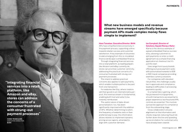 Hans Tesselaar, Executive Director, BIAN APIs have simplified interconnectivity in the payment process, supporting a drive towards retailer success and customer satisfaction. A key example of a business model emerging from this re-modelled finance landscape is embedded finance.
