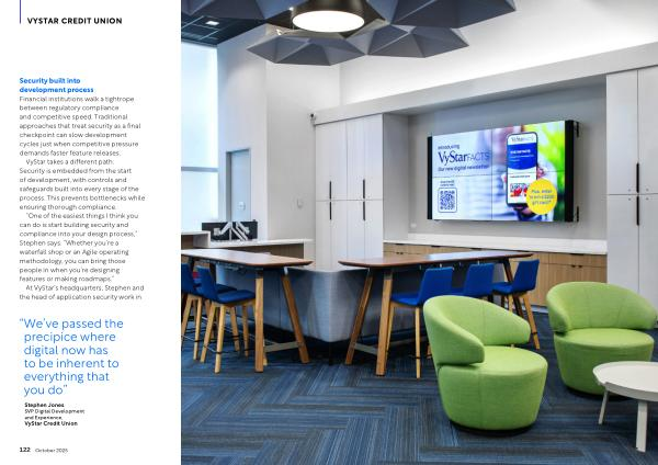At VyStar’ s headquarters, Stephen and the head of application security work in