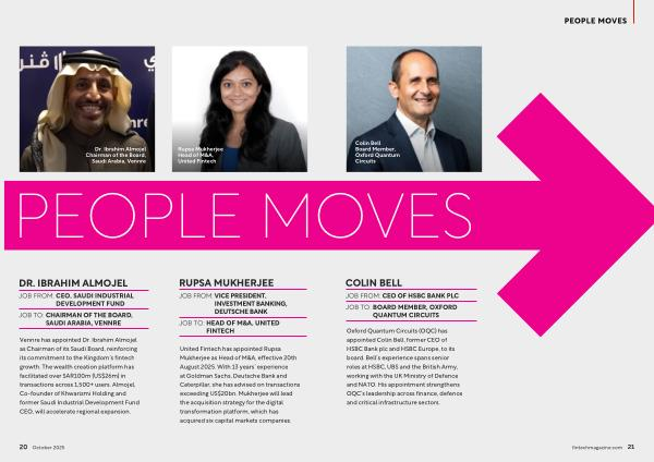Oxford Quantum Circuits( OQC) has appointed Colin Bell, former CEO of HSBC Bank plc and HSBC Europe, to its board. Bell’ s experience spans senior roles at HSBC, UBS and the British Army, working with the UK Ministry of Defence and NATO. His appointment strengthens OQC’ s leadership across finance, defence and critical infrastructure sectors. fintechmagazine. com 21