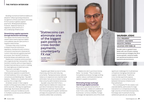 Saurabh notes that CSG Forte is observing how stablecoins reduce not just direct transaction fees but also operational overhead. Improved cash flow forecasting and supplier satisfaction emerge since payments are clear with certainty rather than uncertainty.