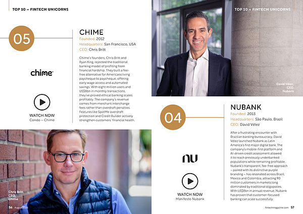 After a frustrating encounter with Brazilian banking bureaucracy, David Vélez launched Nubank as Latin America’ s first major digital bank. The company’ s mobile-first platform and AI-driven credit assessment allowed it to reach previously underbanked populations while remaining profitable. Nubank’ s transparent, fee-free approach – paired with its distinctive purple branding – has resonated across Brazil, Mexico and Colombia, attracting 90 million customers in markets long dominated by traditional oligopolies. With US $ 8bn in annual revenue, Nubank has proven that customer-focused banking can scale successfully.