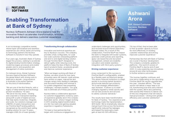 Nucleus Software’ s Ashwani Arora explains how the innovative fintech accelerates transformation, enriches banking and delivers seamless customer experience