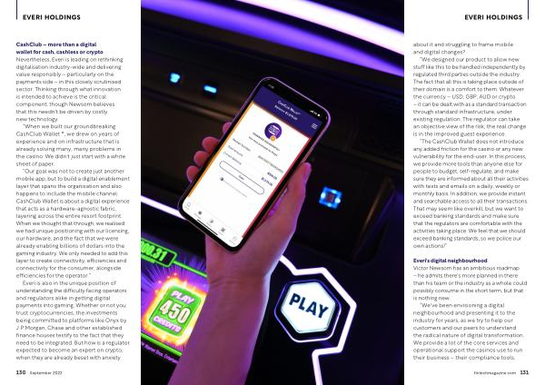 CashClub – more than a digital wallet for cash , cashless or crypto Nevertheless , Everi is leading on rethinking digitalisation industry-wide and delivering value responsibly – particularly on the payments side – in this closely scrutinised sector . Thinking through what innovation is intended to achieve is the critical component , though Newsom believes that this needn ' t be driven by costly new technology .