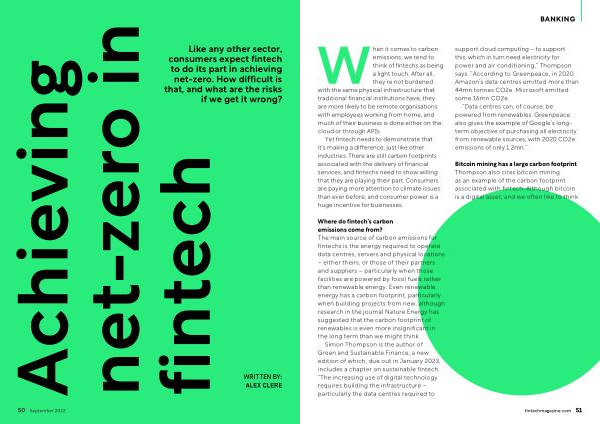 Simon Thompson is the author of Green and Sustainable Finance , a new edition of which , due out in January 2023 , includes a chapter on sustainable fintech . “ The increasing use of digital technology requires building the infrastructure – particularly the data centres required to