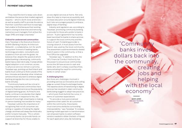 “ Community banks will be critical in ensuring underserved communities have access to financial services as the popularity of digital banking grows . As fintechs and banks continue to accelerate their digital transformation in response to this , the closure of more high-street banks is making in-person banking inaccessible for many .”