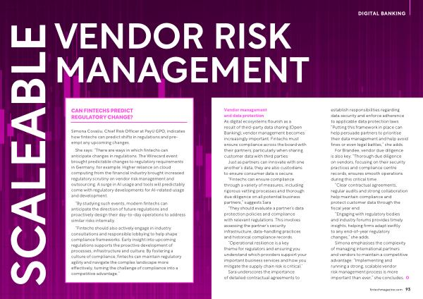 Simona emphasises the complexity of managing international partners and vendors to maintain a competitive advantage : “ Implementing and running a strong , scalable vendor risk management process is more important than ever ,” she concludes .