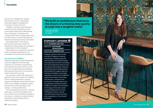 Stephany Lapierre Founder and CEO , TealBook fintechmagazine . com 99