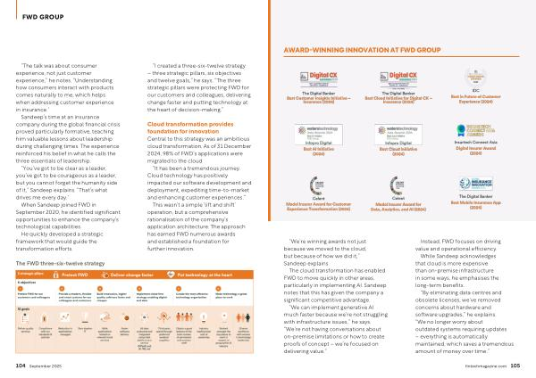 The cloud transformation has enabled FWD to move quickly in other areas, particularly in implementing AI. Sandeep notes that this has given the company a significant competitive advantage.