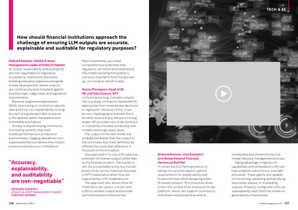 Richard Harmon, Vice President and Global Head of Financial Services at Red Hat It comes back to the importance of taking into account explicit upfront requirements for explainability and trustworthiness when designing a Gen AI-based solution. This should be done within the context of an enterprise AI ops platform, which can support consistency with these requirements as well as standardise and streamline the full model lifecycle management process.