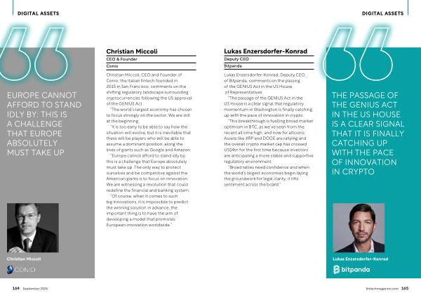 Christian Miccoli, CEO and Founder of Conio, the Italian fintech founded in 2015 in San Francisco, comments on the shifting regulatory landscape surrounding cryptocurrencies following the US approval of the GENIUS Act.