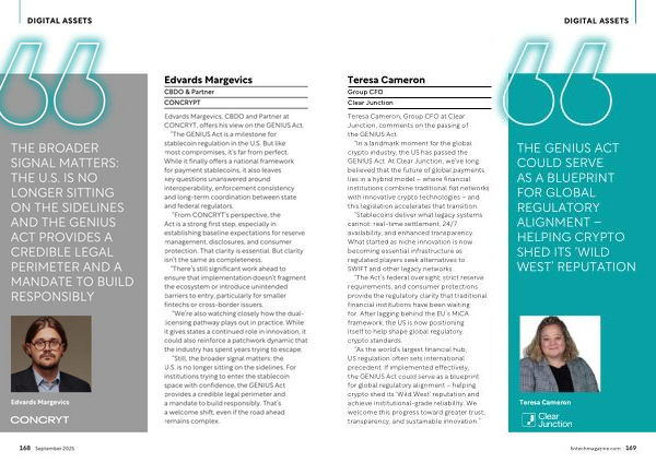 Edvards Margevics, CBDO and Partner at CONCRYT, offers his view on the GENIUS Act.