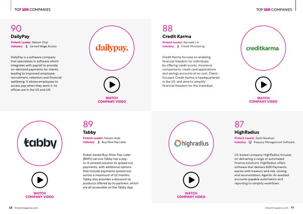 WATCH COMPANY VIDEO fintechmagazine. com 19