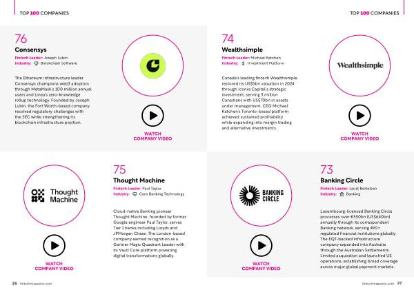 Cloud-native Banking pioneer Thought Machine, founded by former Google engineer Paul Taylor, serves Tier 1 banks including Lloyds and JPMorgan Chase. The London-based company earned recognition as a Gartner Magic Quadrant Leader with its Vault Core platform powering digital transformations globally.