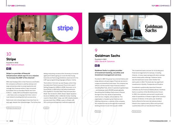 The investment bank is known for its funding and financial arrangements for startups, including fintechs, in many cases seeing profit when startups launch initial public offerings. Goldman Sachs was the lead book-runner when Twitter first went public in 2013. The bank also has significant investments in Spotify, Foodpanda and Dropbox.